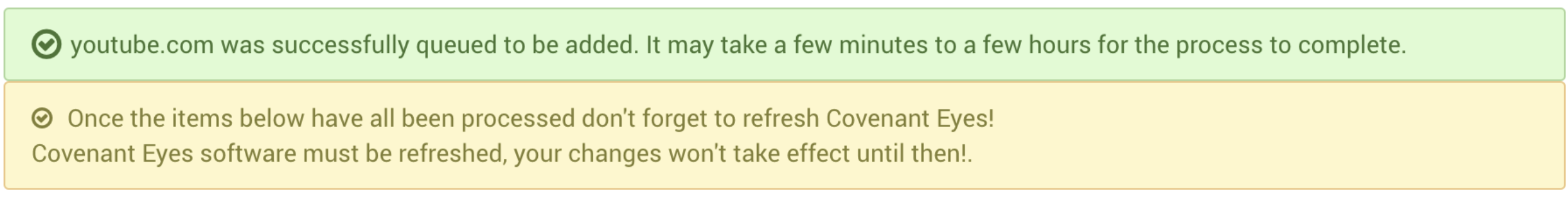 The domain will then be on the list. To ensure that the software is working according to your newest list, you will need to refresh Covenant Eyes on each device.